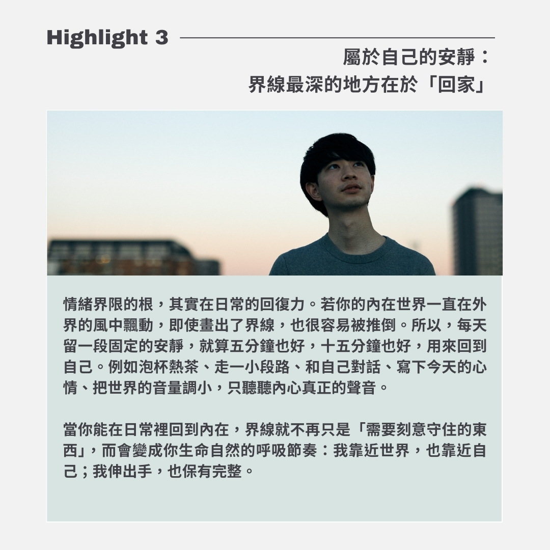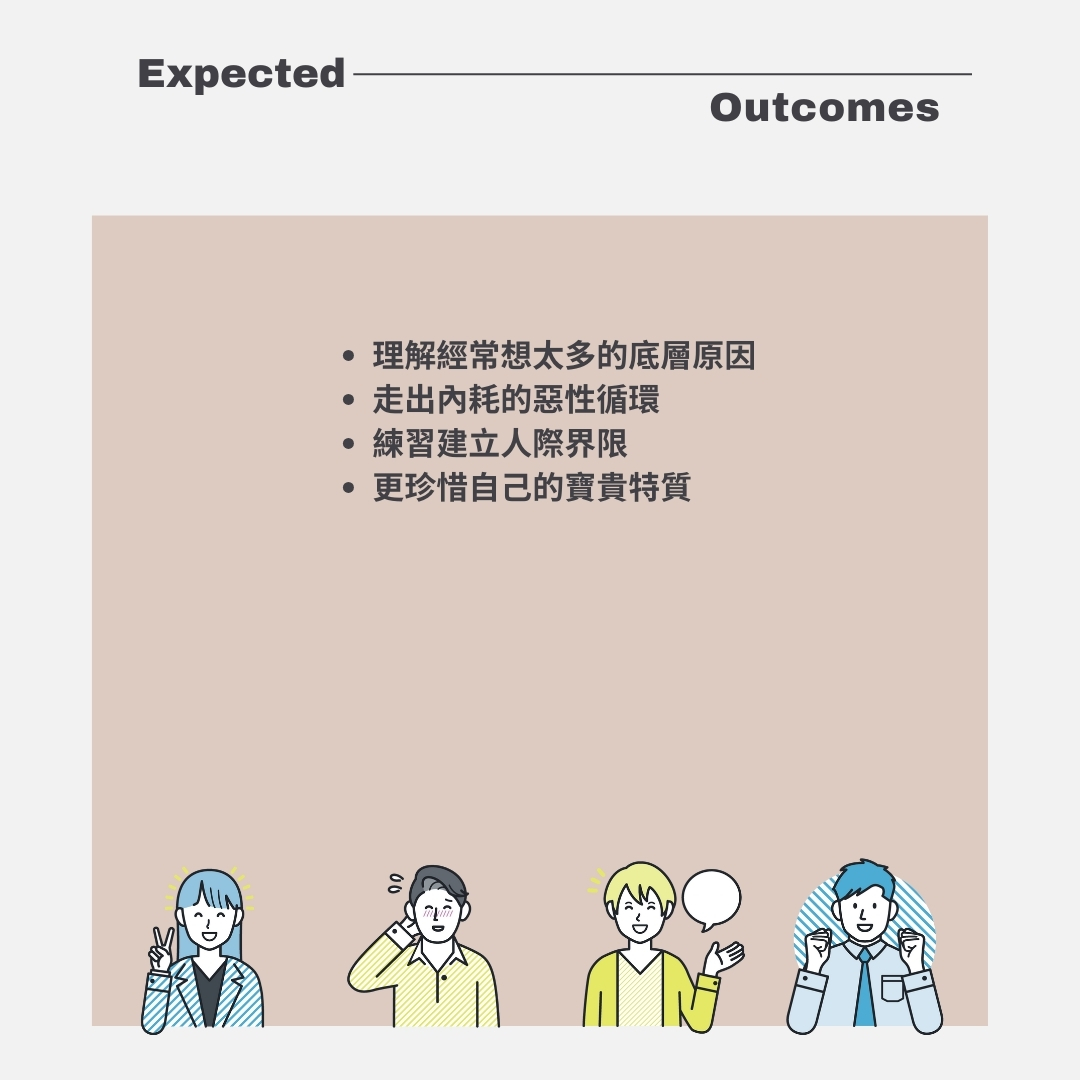 這堂課將帶你理解何以高敏感的人特別容易內耗、情緒容易被放大、在關係裡總是太在意。你不需要讓自己變得不敏感,而是學會用更溫柔、實際可行的方法,讓大腦慢慢安靜下來,讓心不在一直處在過度警覺的狀態。