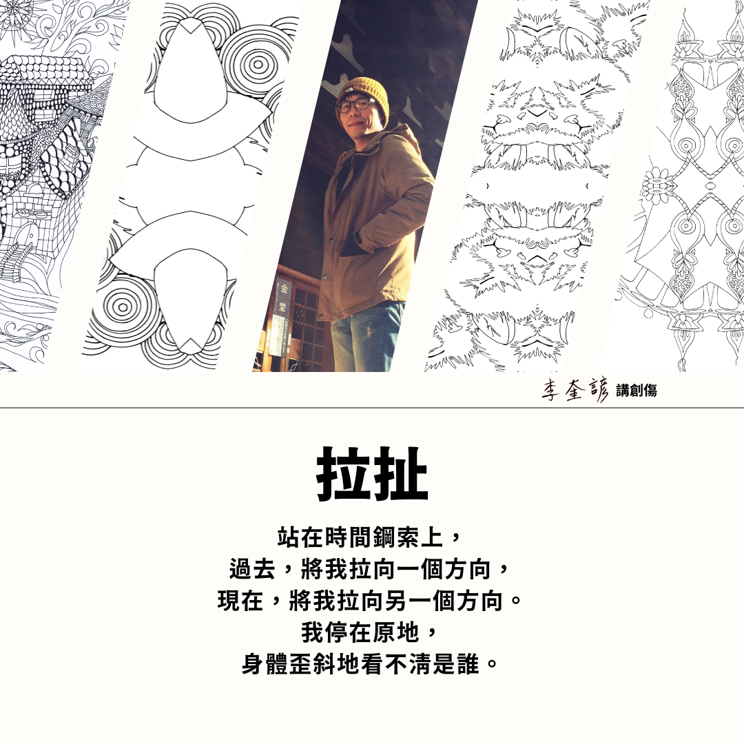 認為人處在身心的動態平衡,而困境會在擺盪間出現。在擺盪間,迷失了自己,也會在迷失中找到自我。如同鐘擺,找到自我如回到中心,但生命總是無常,也許下一刻又開始擺動起來了。