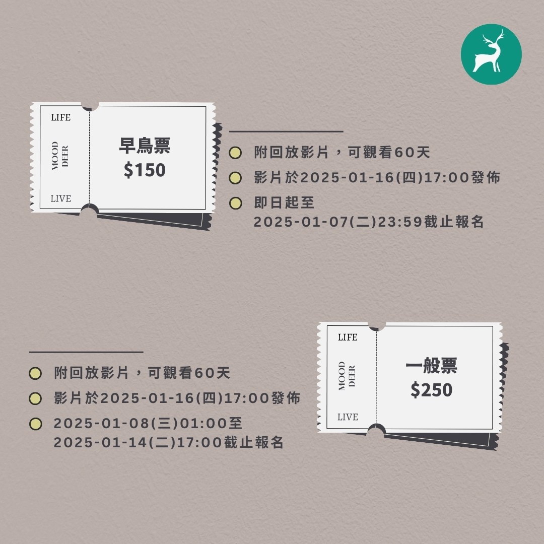 1.購買早鳥票或一般票的會員,可於2025年1月16日(四)17:00開始,
