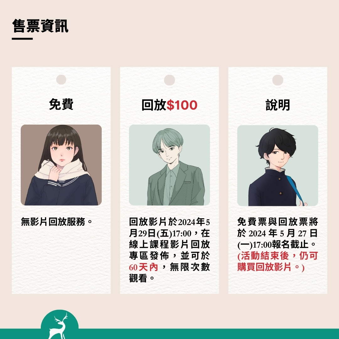 1.購買回放的民眾,可於2024年5月31日(五)下午5時開始,登入網站後,至【我的課程】>【回放影片】找到該場活動,即可觀看回放影片。