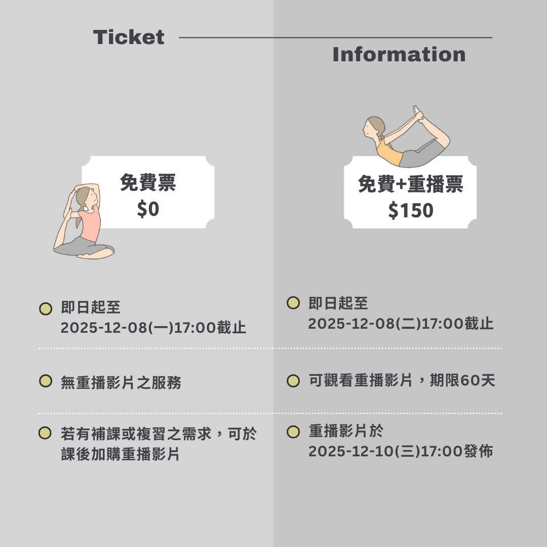 1.購買早鳥票或一般票的會員,可於2025-12-02(二)17:00開始,登入網站後,至【我的回放】,找到本課程,即可觀看重播影片。