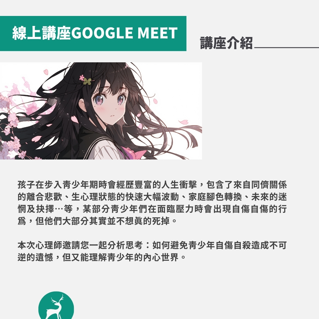 2.行前通知為輔助與提醒性質,主辦單位無法保證每位報名者皆能收到。若沒有收到通知,請登入Mood Deer,前往「我的課程」,接著選「課程票券」,找到該場活動,並點「快速取票」,即可依照票券顯示時間進入Google Meet。此為進入Mood Deer線上活動的標準程序。