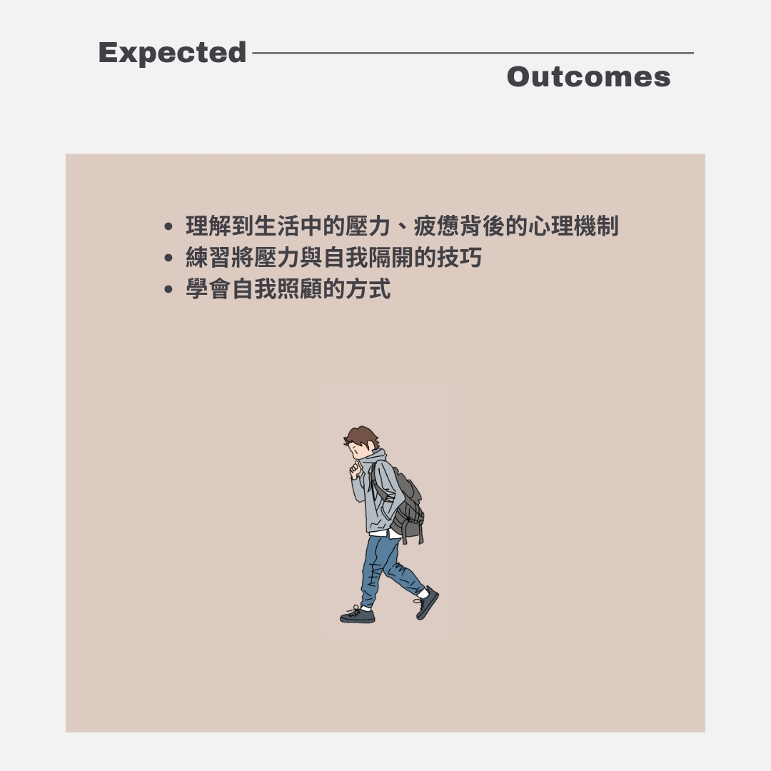 這場講座將帶領你暫時按下生活的暫停鍵,透過心理學的覺察練習,溫柔地梳理腦海中的雜訊。我們不求快、不趕進度,只願你在這段專屬的時間裡,練習與壓力和平共處。給心靈一個深呼吸的機會。