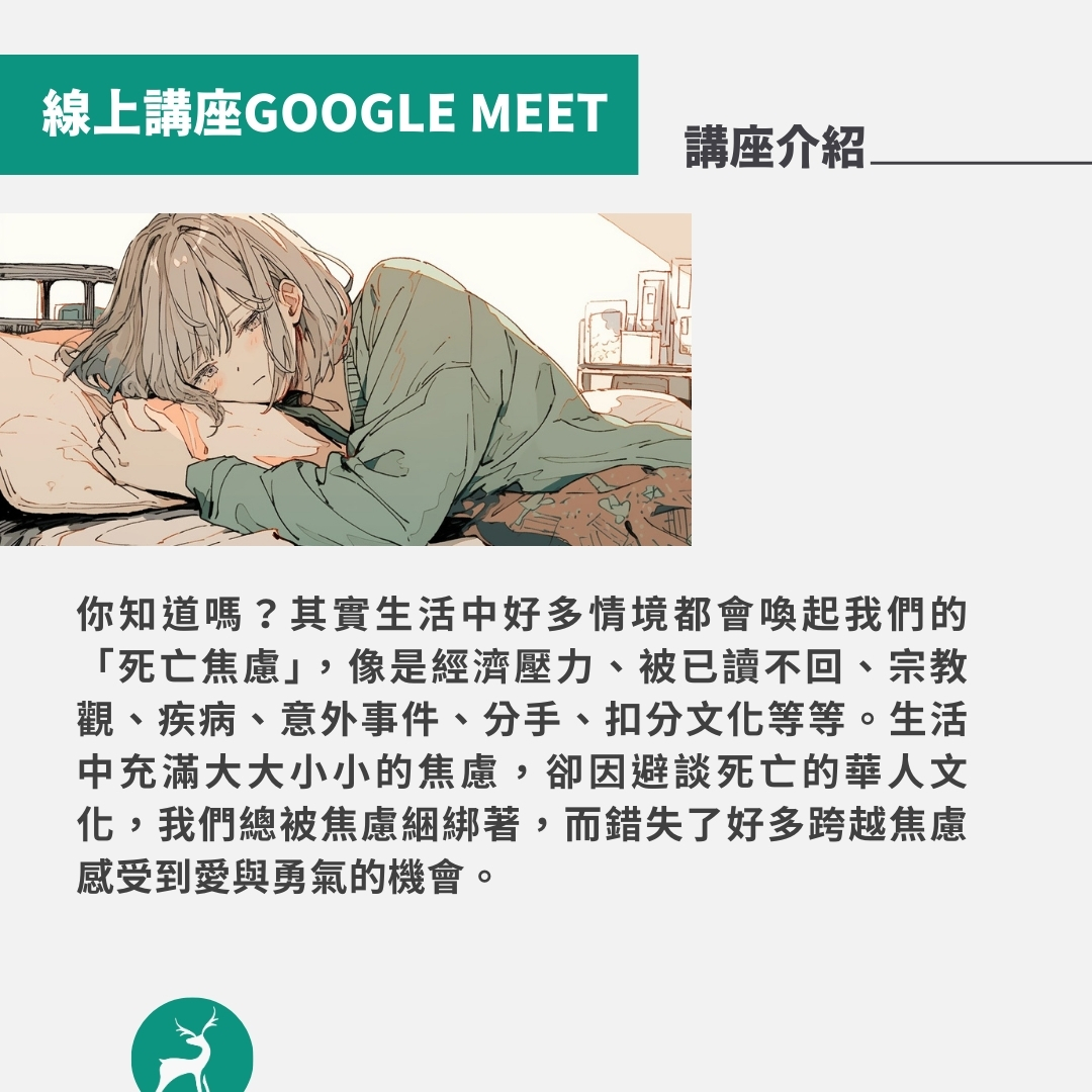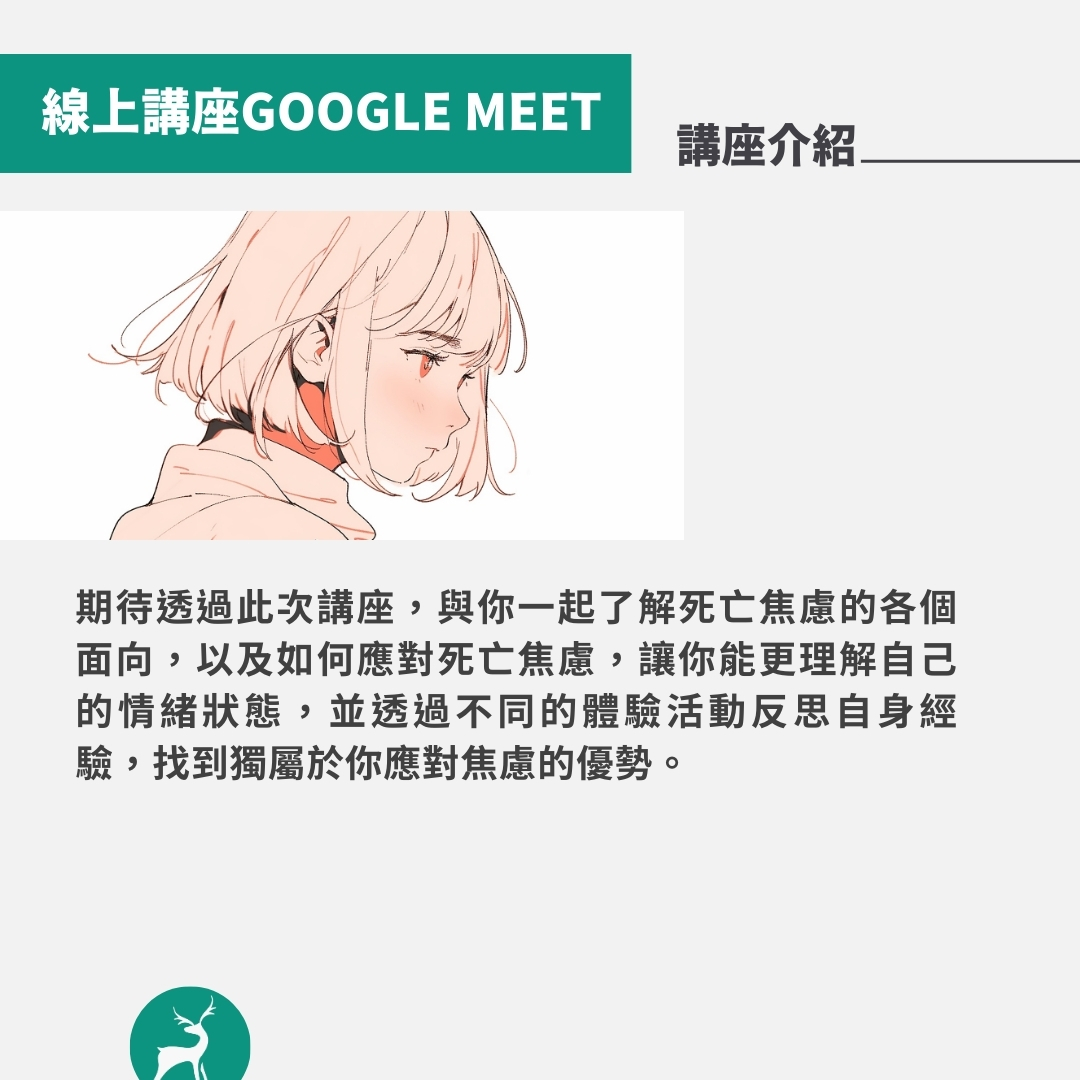 2.行前通知為輔助與提醒性質,主辦單位無法保證每位報名者皆能收到。若沒有收到通知,請登入Mood Deer,前往「我的課程」,接著選「課程票券」,找到該場活動,並點「快速取票」,即可依照票券顯示時間進入Google Meet。此為進入Mood Deer線上活動的標準程序。
